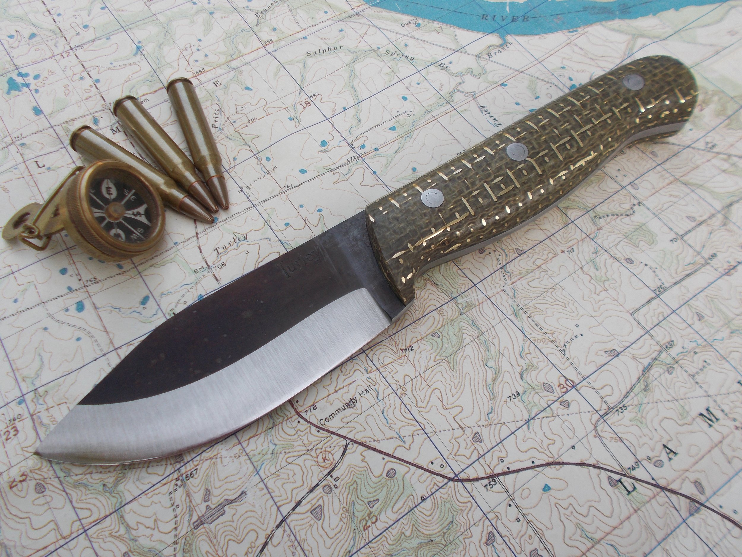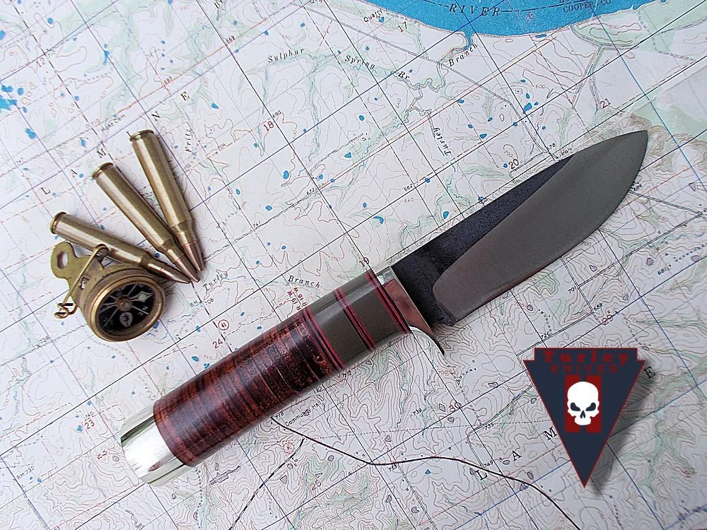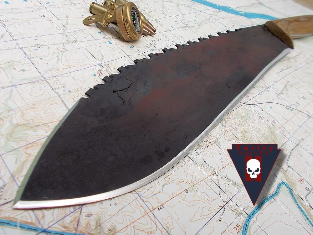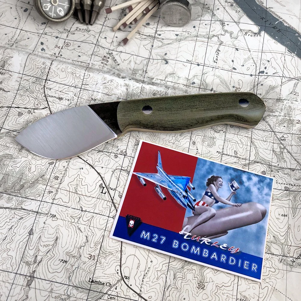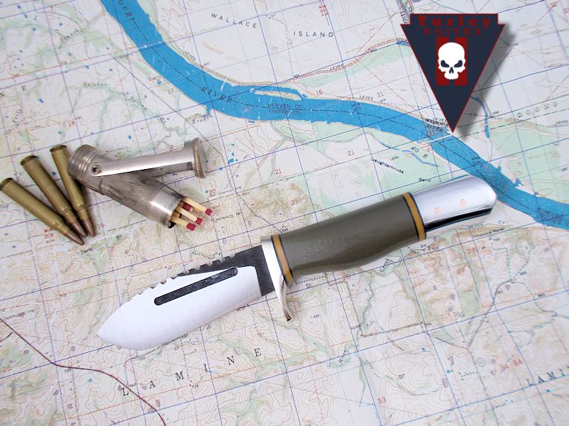In order to get this massive drop and still have a straight cutting edge I had to compensate by lowering the rest of the knife. It's actually a very comfortable knife to use because of the drop. This knife and the Green river are pretty much the culmination of my own woods experience and reflect best how I use a knife. This knife was the first of the unique Turley designs that most every knife in the lineup displays today.