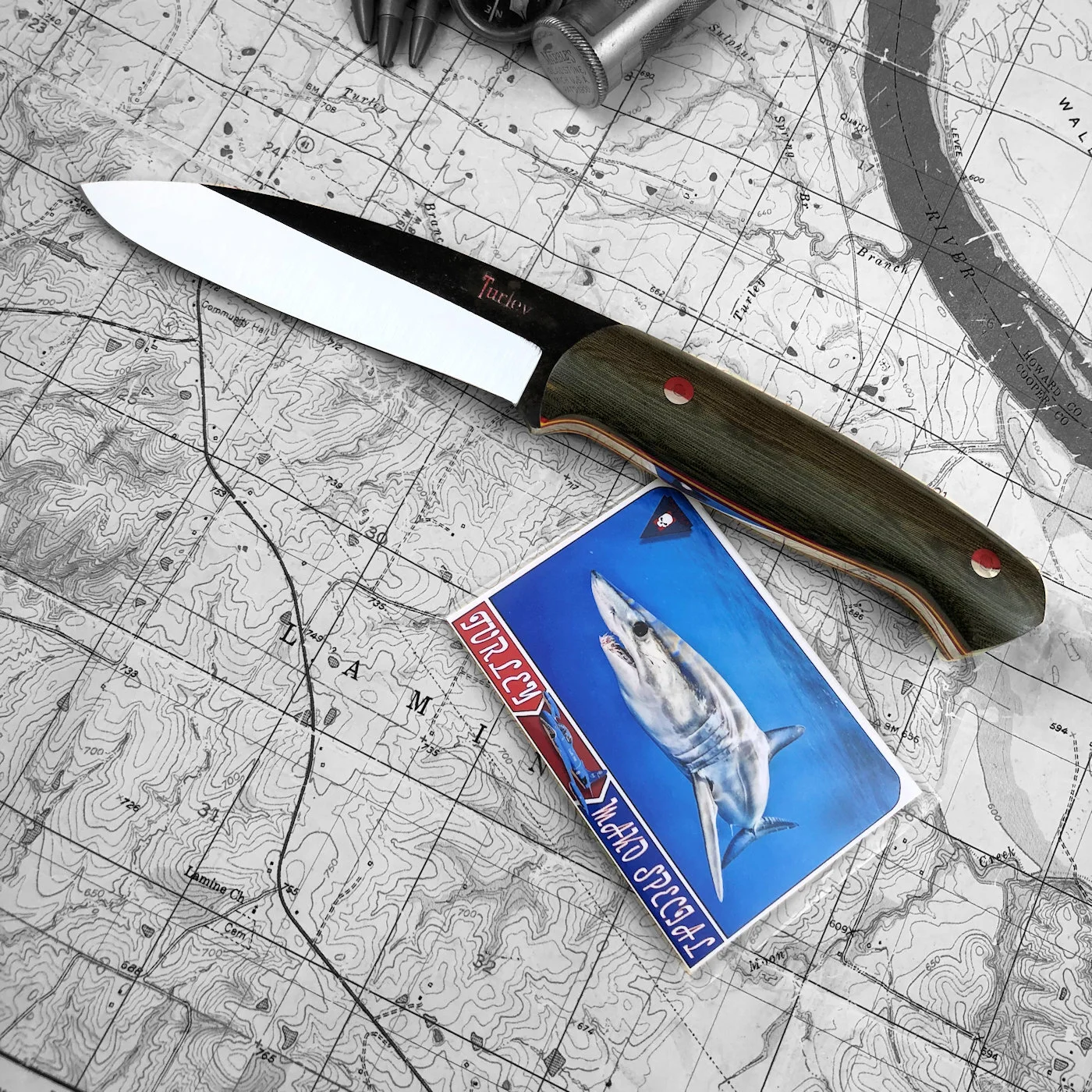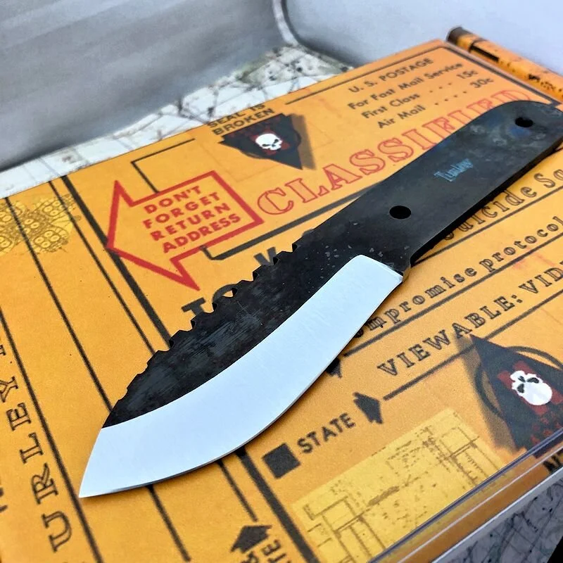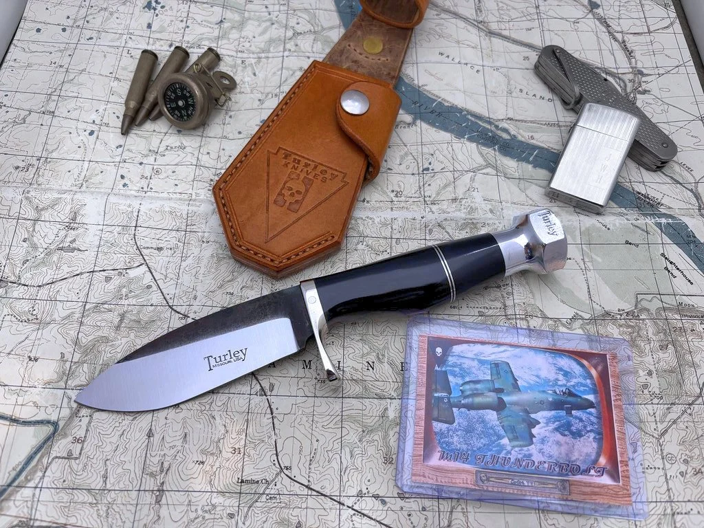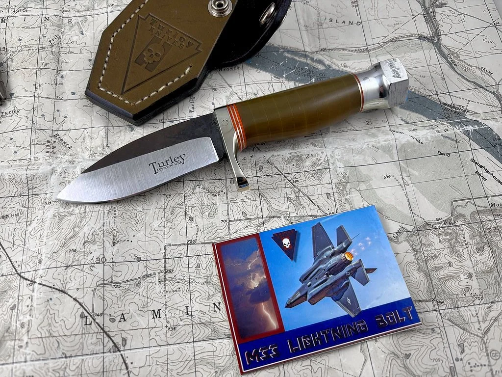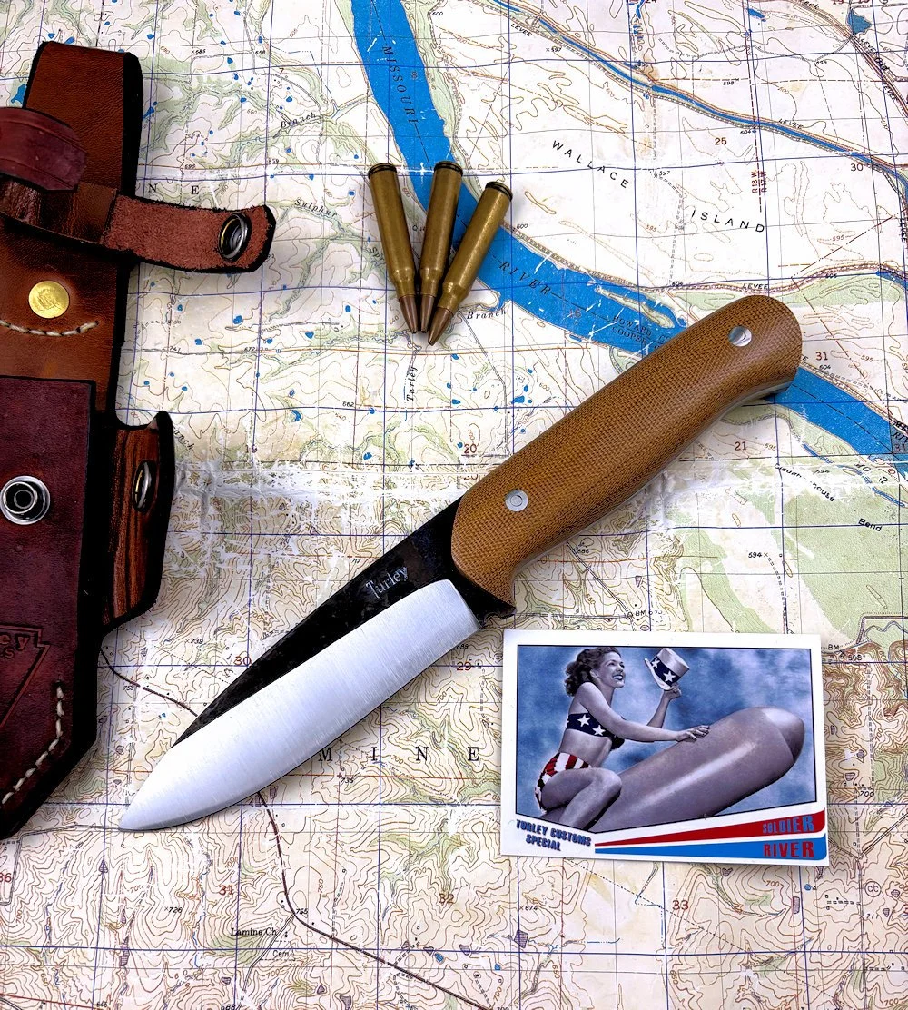 In order to get this massive drop and still have a straight cutting edge I had to compensate by lowering the rest of the knife. It's actually a very comfortable knife to use because of the drop. This knife and the Green river are pretty much the culmination of my own woods experience and reflect best how I use a knife. This knife was the first of the unique Turley designs that most every knife in the lineup displays today.
