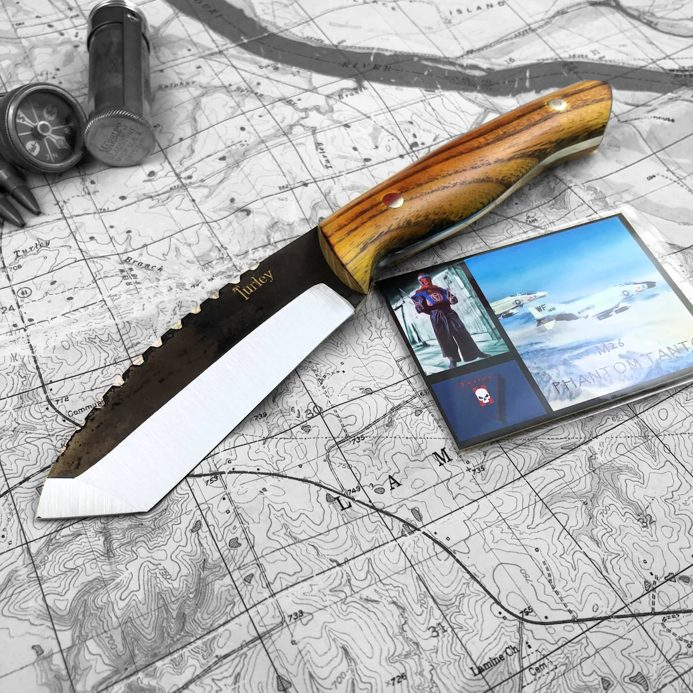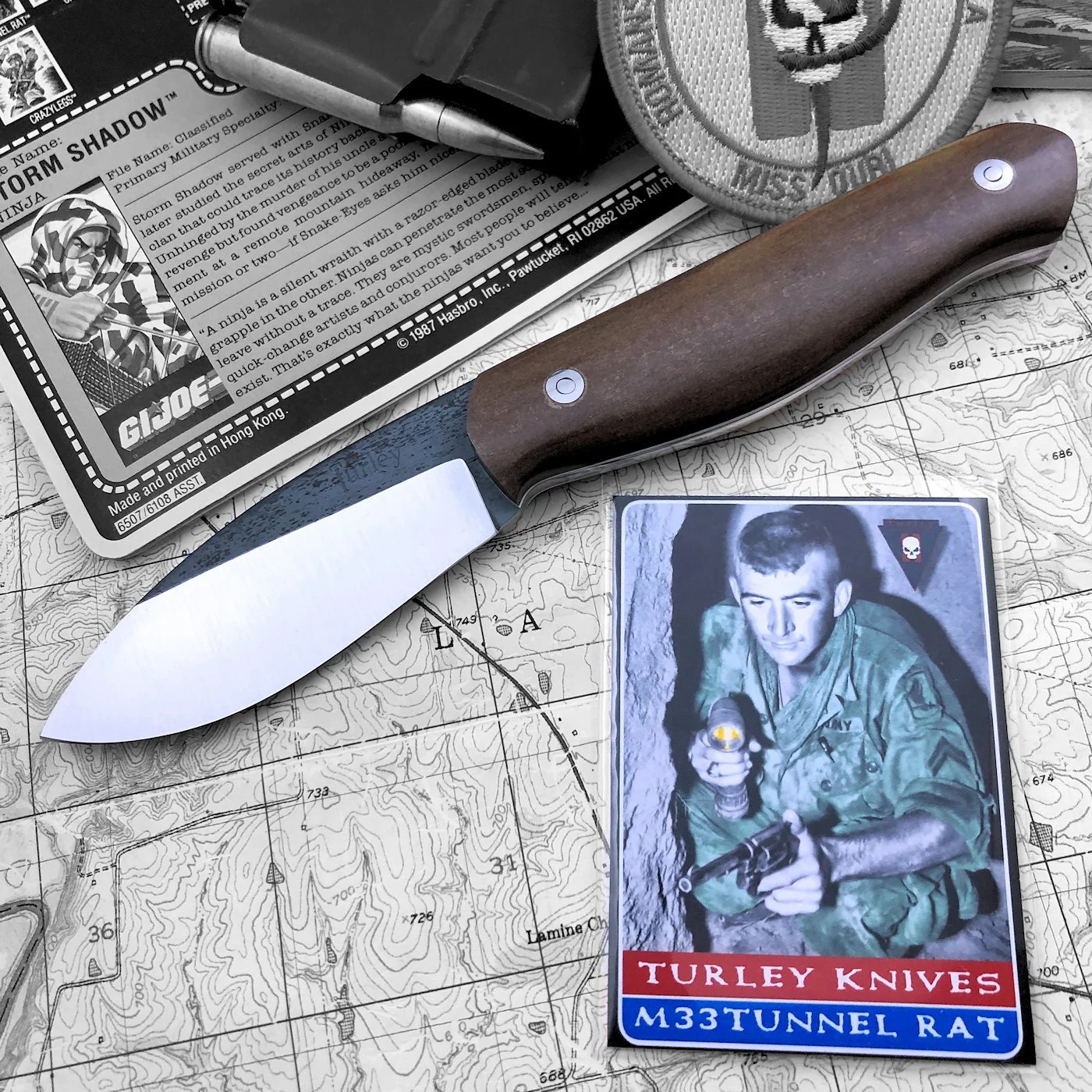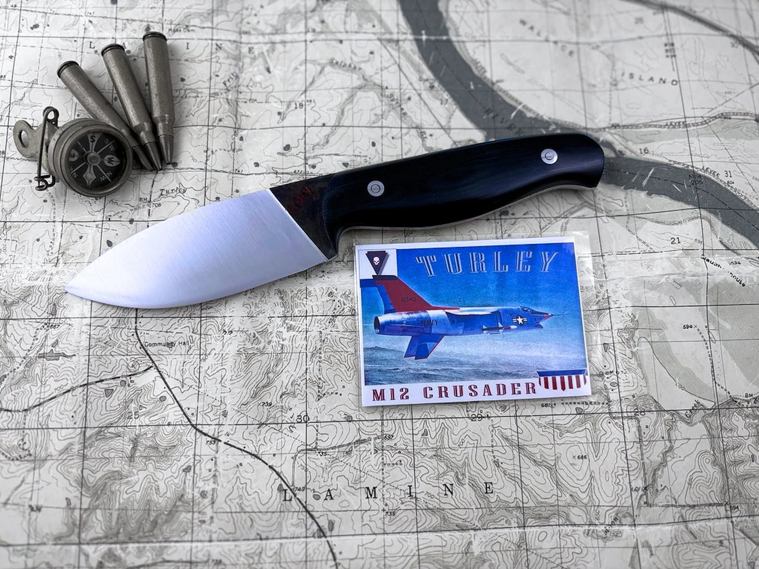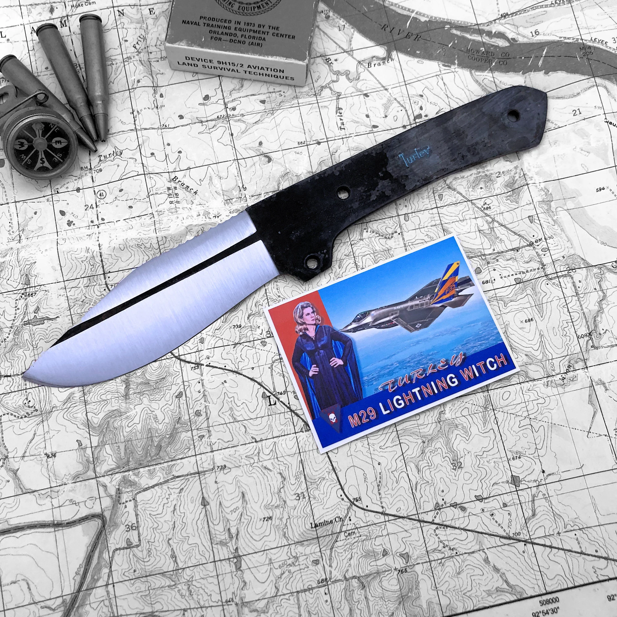 In order to get this massive drop and still have a straight cutting edge I had to compensate by lowering the rest of the knife. It's actually a very comfortable knife to use because of the drop. This knife and the Green river are pretty much the culmination of my own woods experience and reflect best how I use a knife. This knife was the first of the unique Turley designs that most every knife in the lineup displays today.