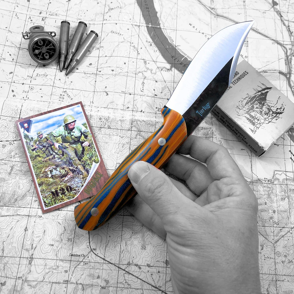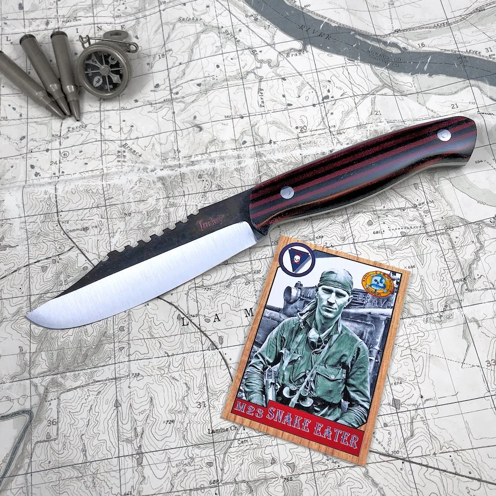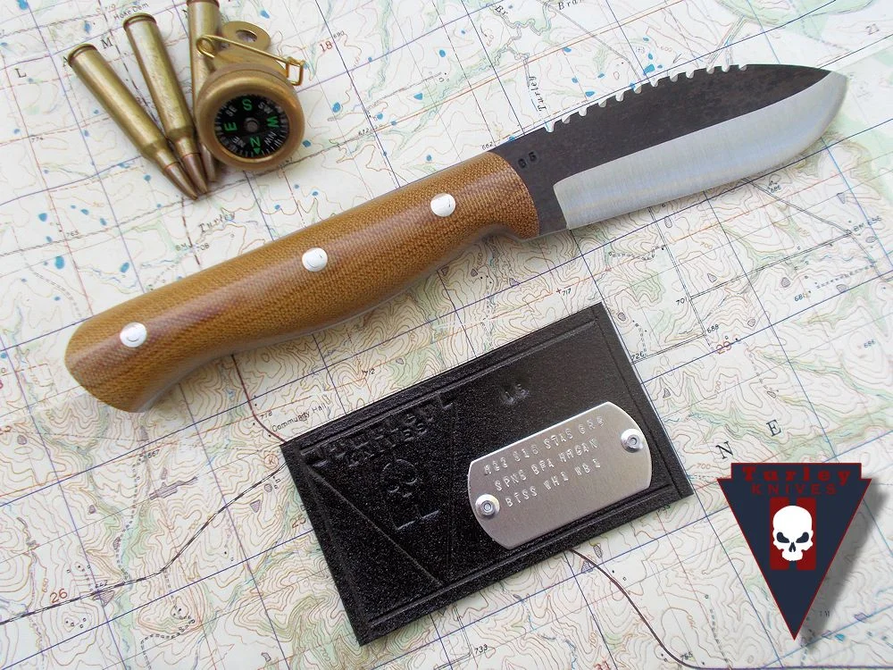 Base price includes: o-1 tool steel, any commonly available micarta or g10 handle material and stainless handle bolts